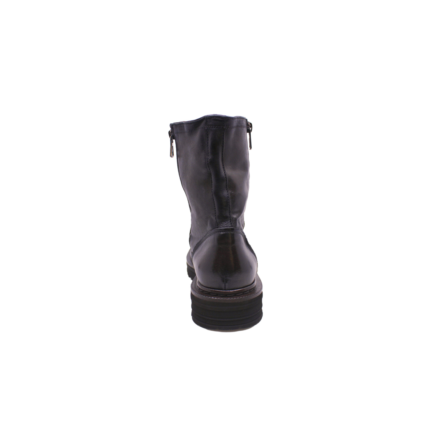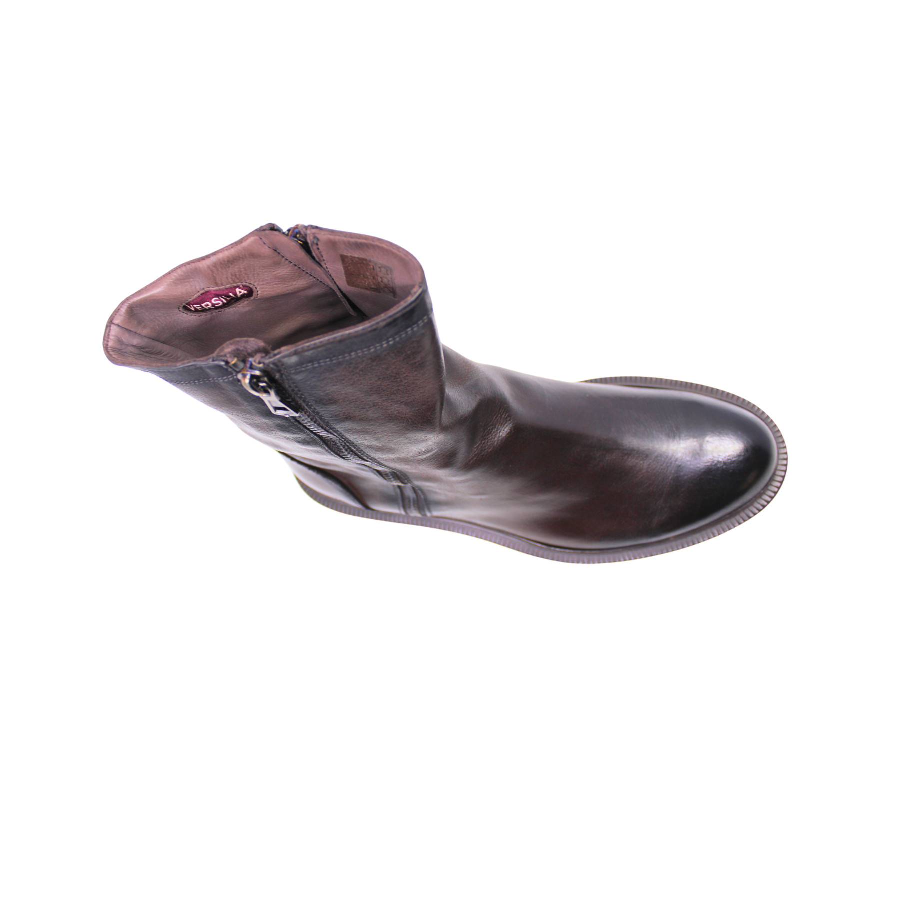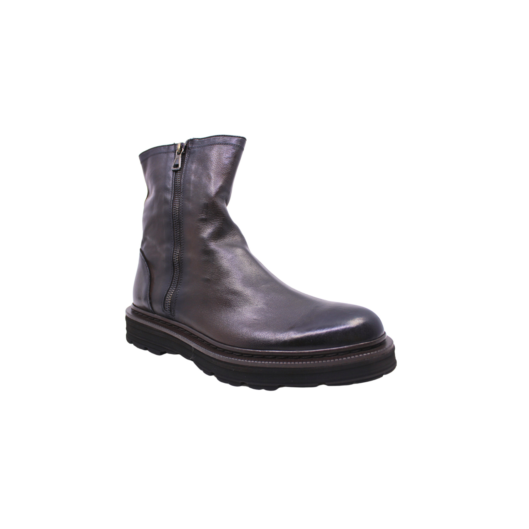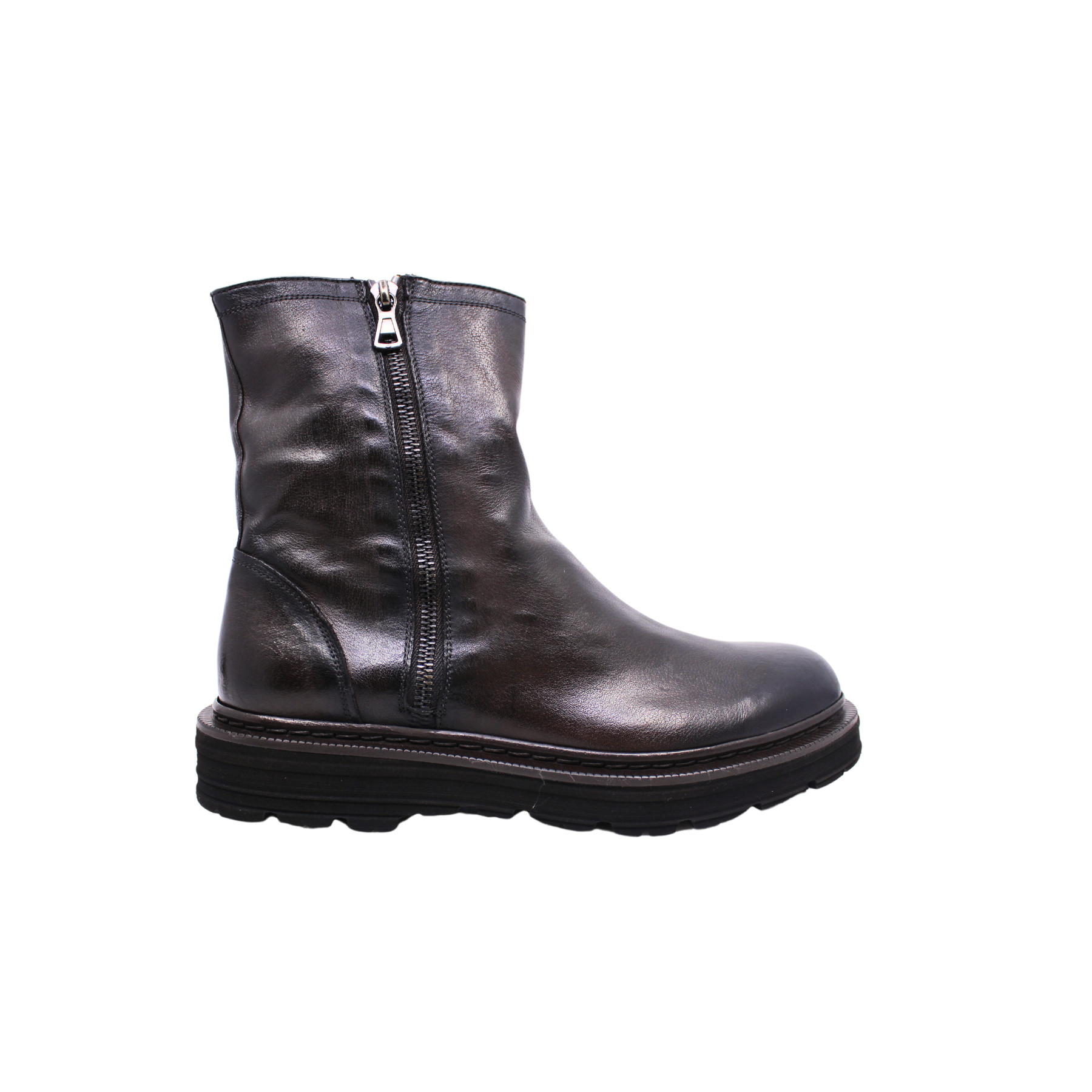 Boots marron foncé en cuir souple, avec double zip.