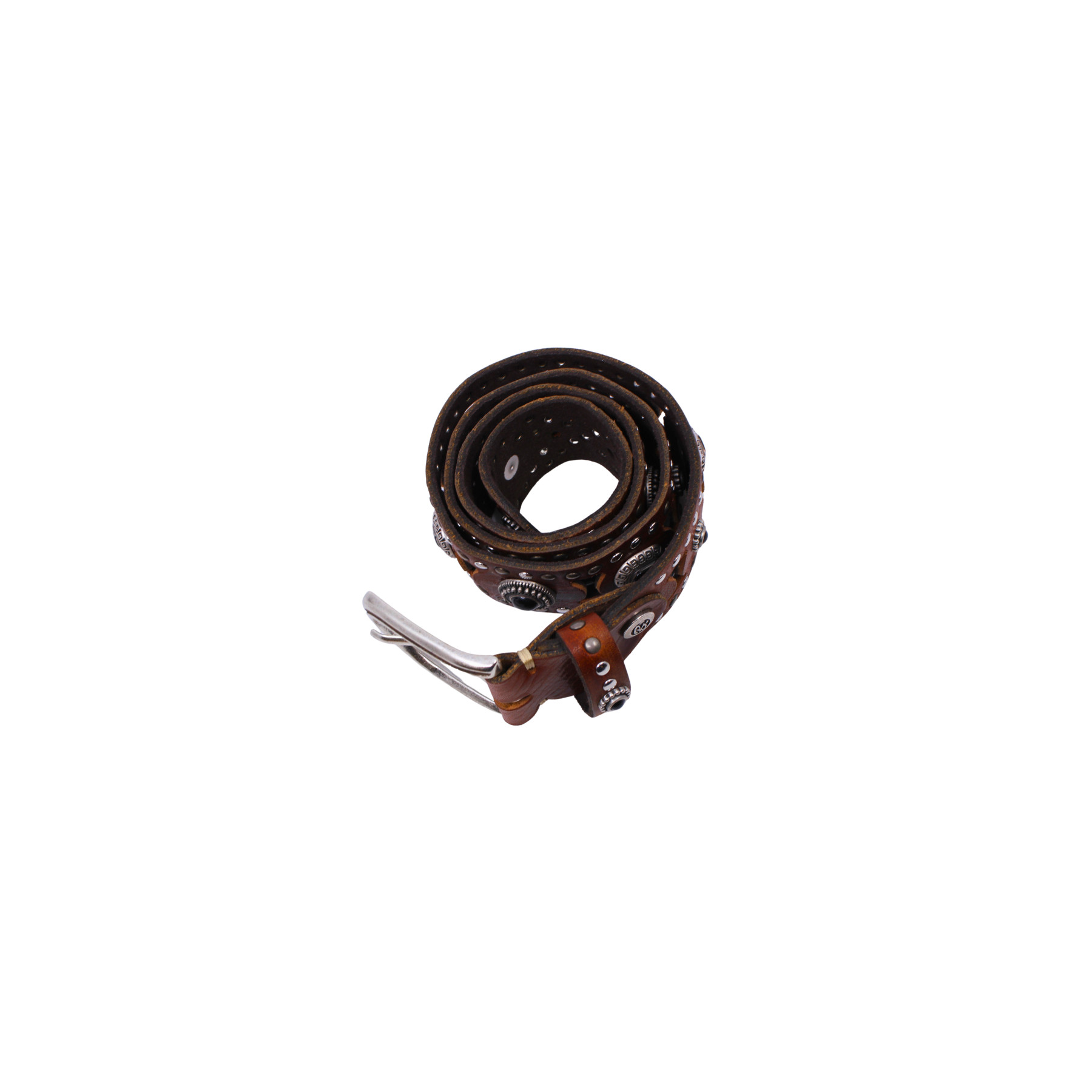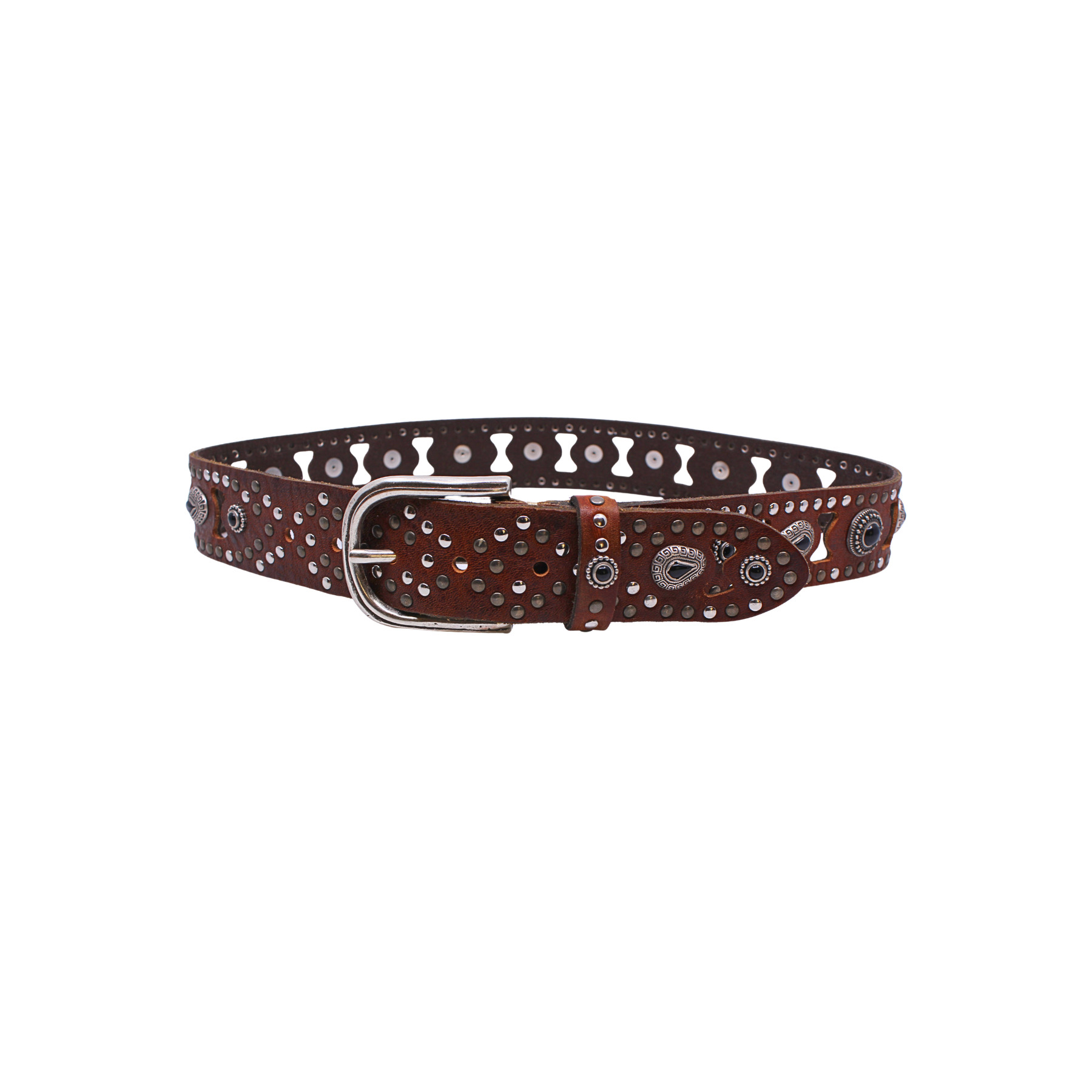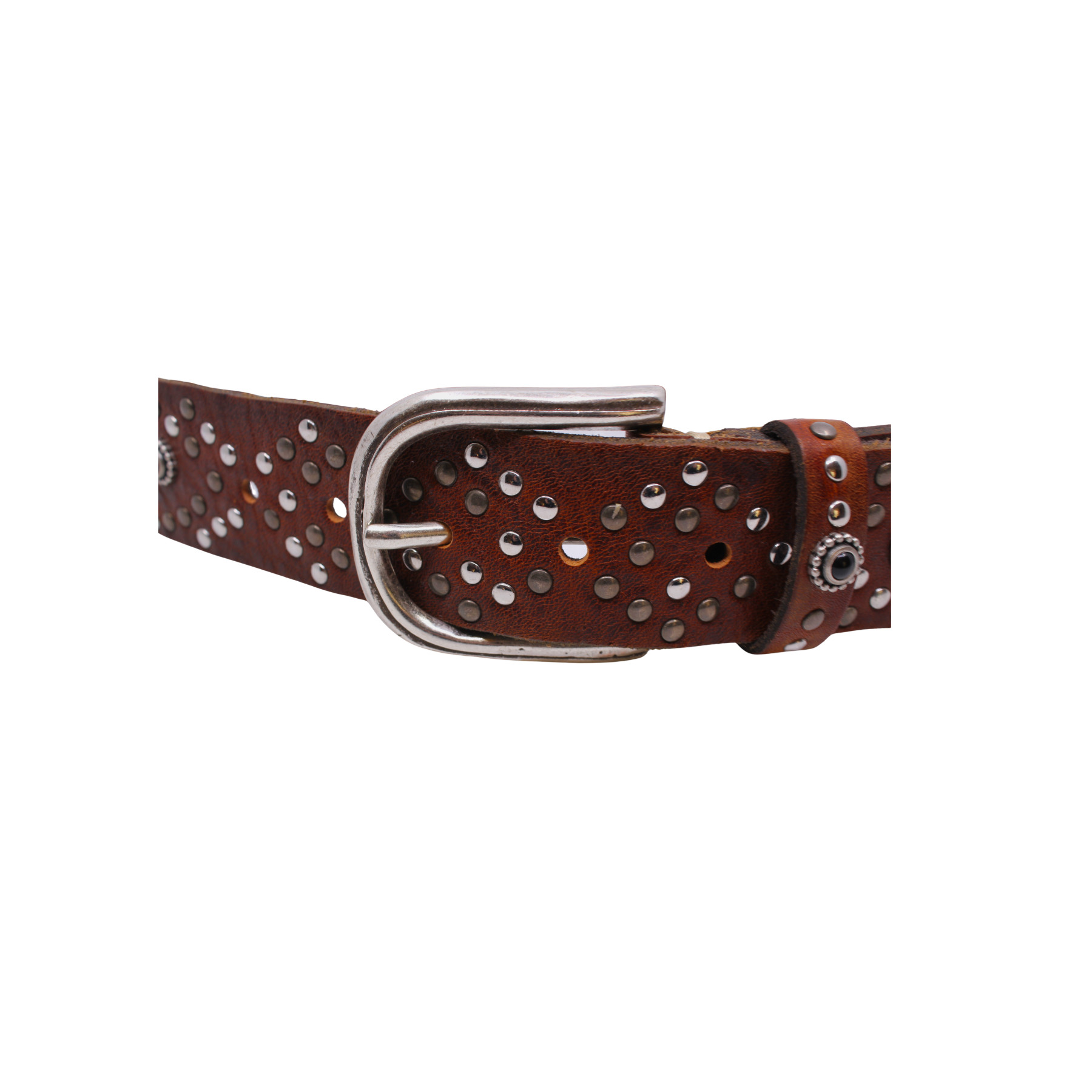 ceinture en cuir camel avec trous et décorations argentées , en cuir de haute qualité dans un design très tendance