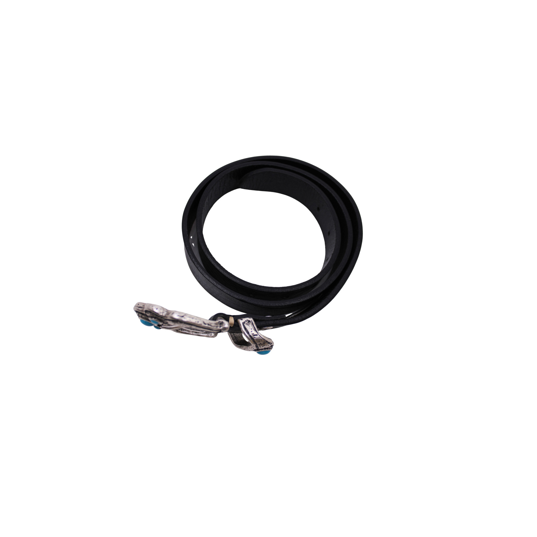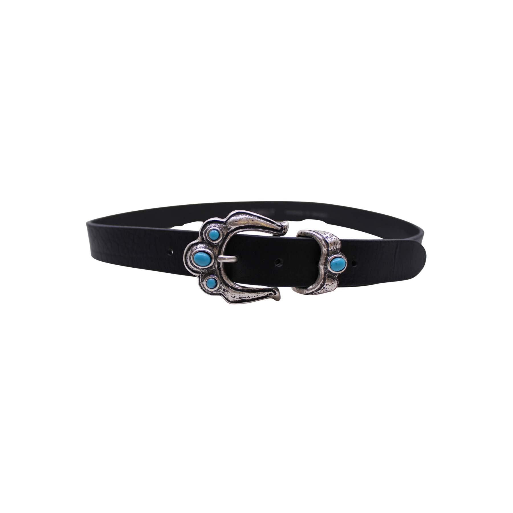 Ceintures B.BELT en cuir noir, avec boucle patte de chat décoré de bijoux bleus