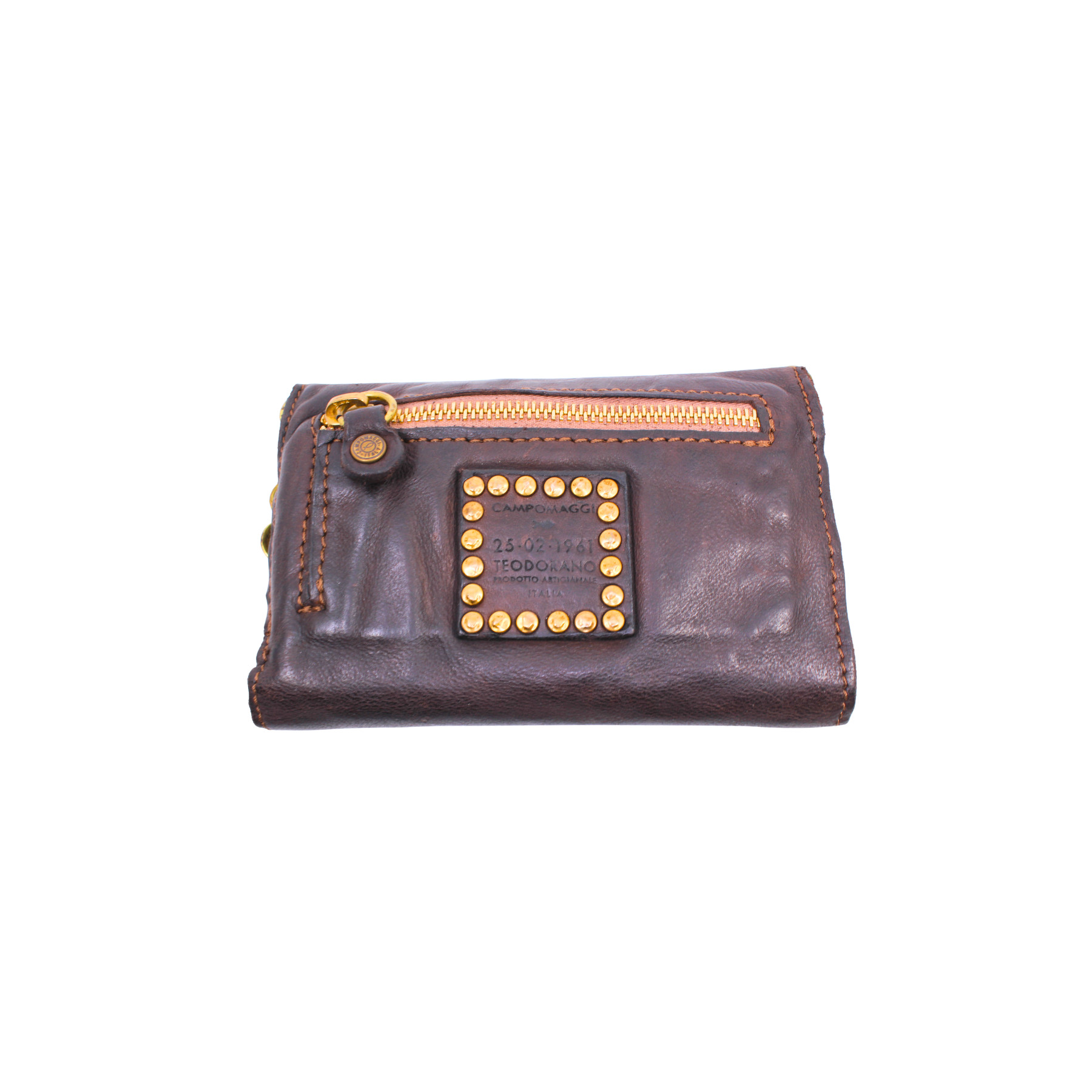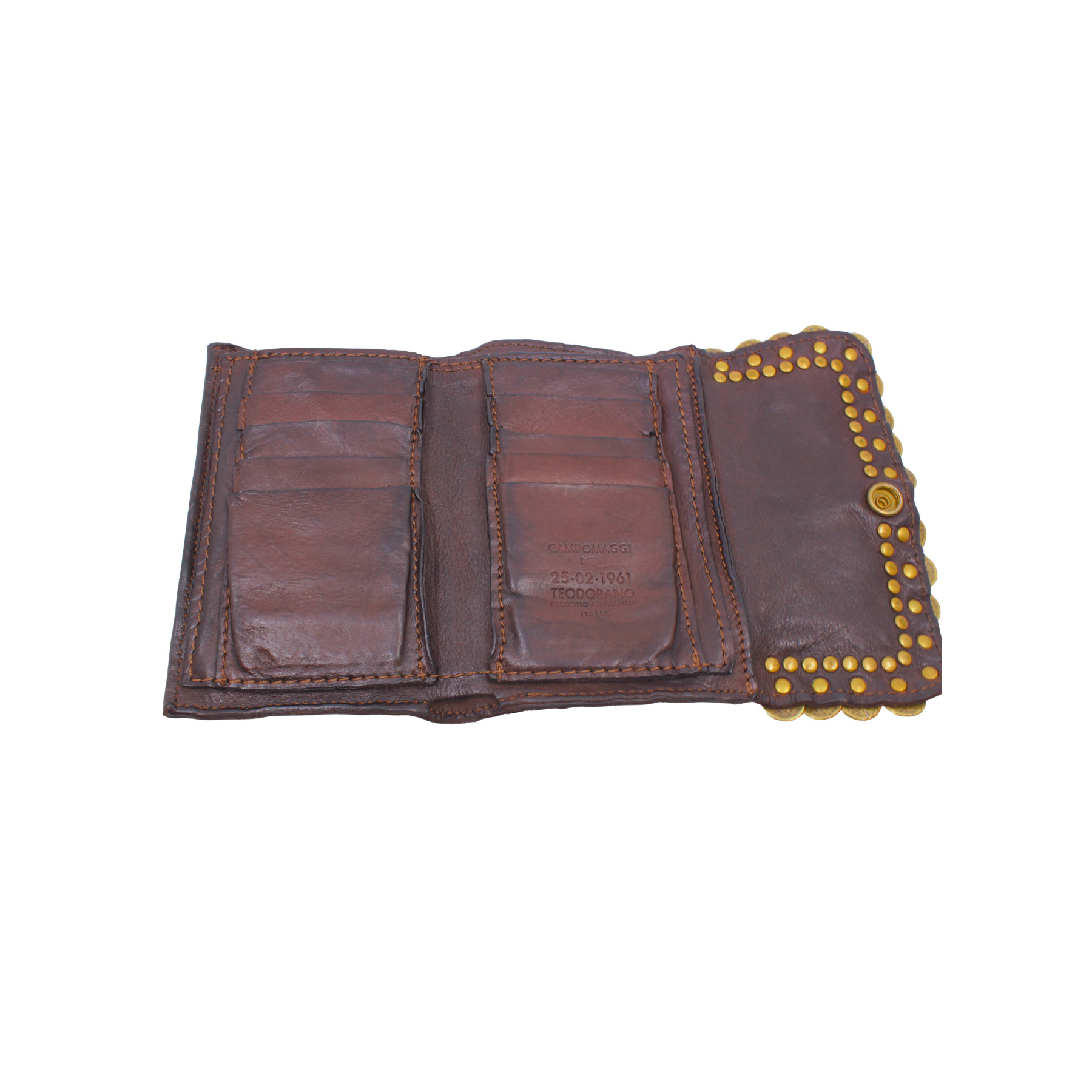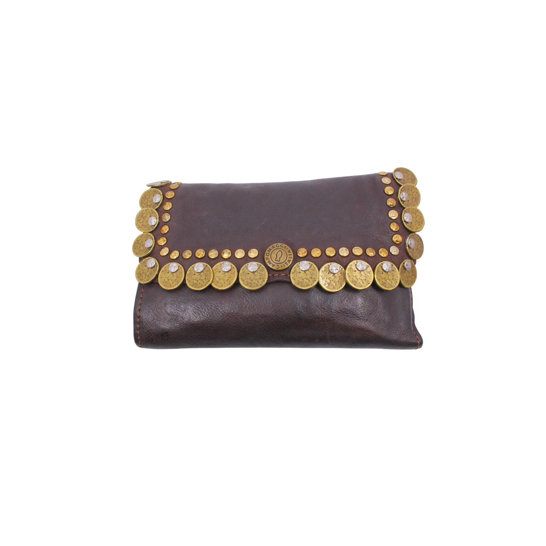 Portefeuille "MIRTA" avec porte-monnaie en cuir de vachette teinté à la main avec des clous et des médailles